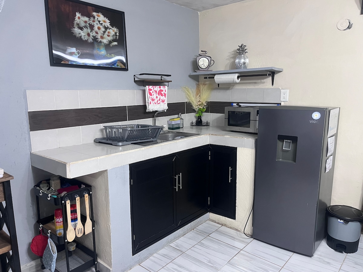 Basic apartment with kitchen for “low-cost” travelers, located near the main road and nine blocks from La Laguna. ⚠️IMPORTANT: Due to recent work on the Tren Maya, there have been reports of power outages in the area. Some guests spend their stay without any problem and others experience light variations or blackouts. Pets are not allowed We don't provide luggage storage service. The apartment is available for check-in until 3:00 PM.