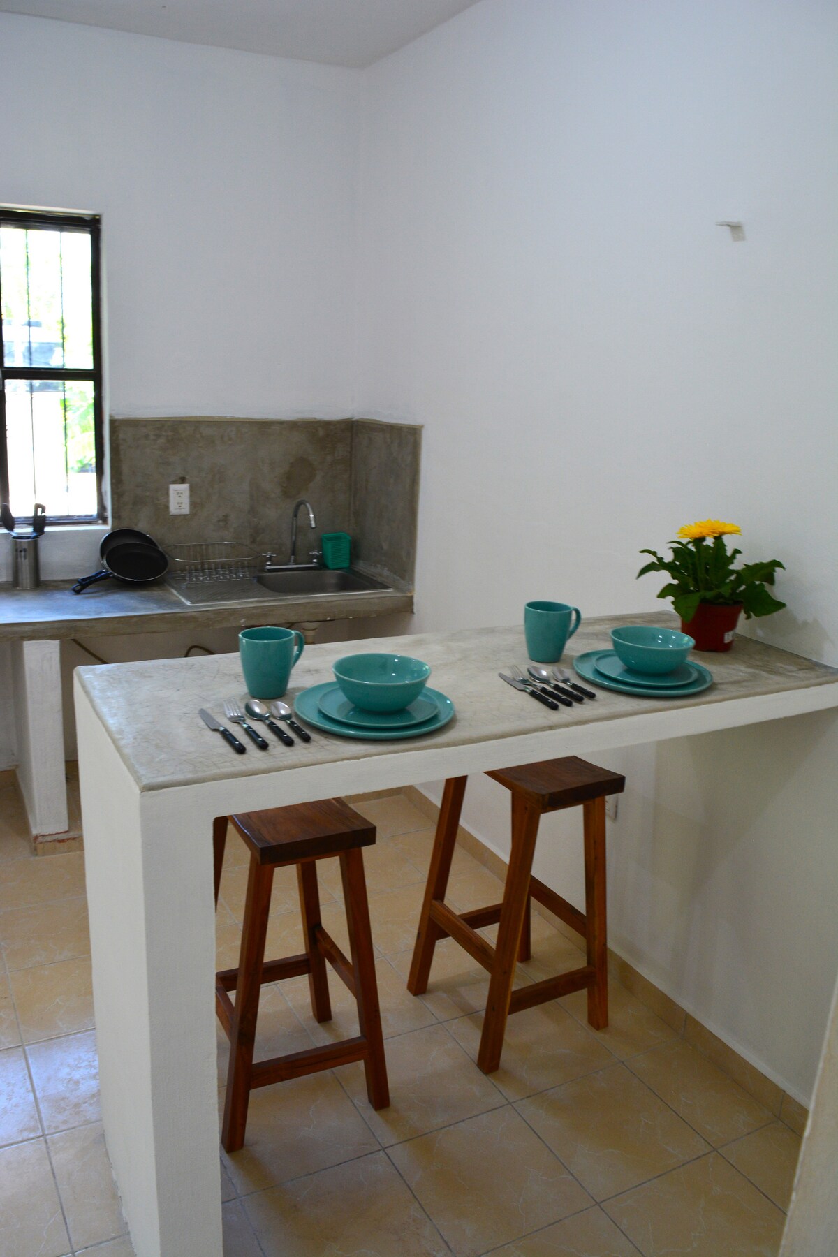 Ideal apartment for two people with a queen size bed, A/C, TV, and private bathroom. The Airbnb has a kitchen and utensils. It is on the second floor. Only for guests. Excellent location 3 minutes from the ADO and 5 minutes from the Plaza “Las Américas”. A snack bar on the ground floor with Yucatecan snacks from 4 pm to 11 pm.