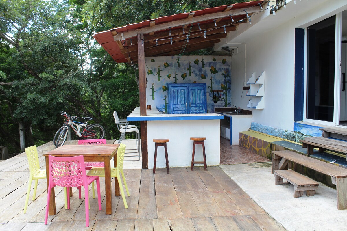 Laila's House is a little piece of Bacalar and Mexico for our guests. We are located a few blocks from the main square and from the lagoon. Our focus was to design a place that brings a unique experience: comfort, luxury, and traditions, all in one place. Fully equipped kitchen, big windows with view to the green garden and fast WiFi are some of the services we provide. On the terrace, you can practice any activity like yoga or do a barbecue.