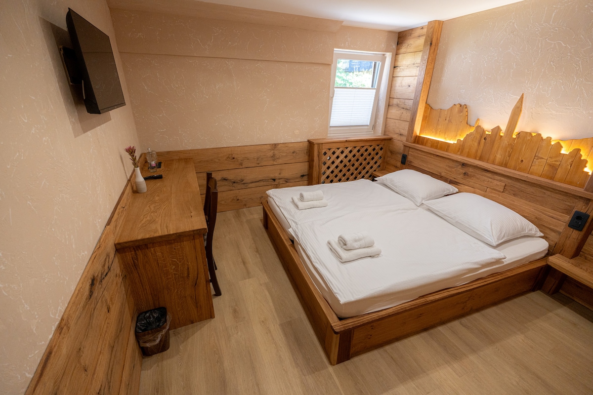 Room 47 offers you private 1st floor of the house. There are 3 double bedrooms, private bathroom and big balcony with sunbeds and amazing mountain view. You are the only guest in the house. In the garden behind the house is an equipped summer kitchen ( toaster, microwave, electric stove and wodden BBQ grill ). There is also a lovely summer garden for use. The Room 47 is suitable for family, solo travellers or couples. (6max). Tourist tax is not included in the price.