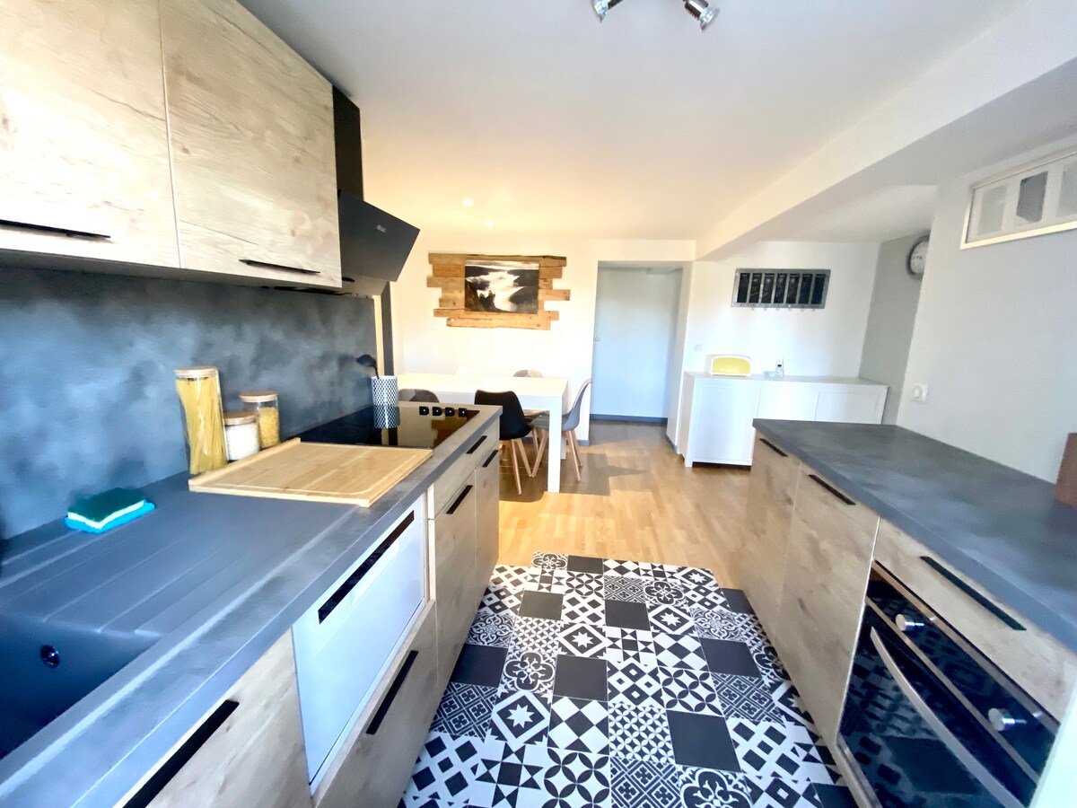 Bright and freshly renovated attic of 60m2, this pleasant relaxing cocoon is idyllic for a weekend or a peaceful week at the bottom of Mont Lozère. The Stevenson road and shops are 1km away. (Grocery store, bakery...) Two bedrooms and a large living room compose this apartment fully equipped: Oven awaiting delivery, last generation washing machine, Italian shower, ceramic hob, leather sofa bed, wood stove.