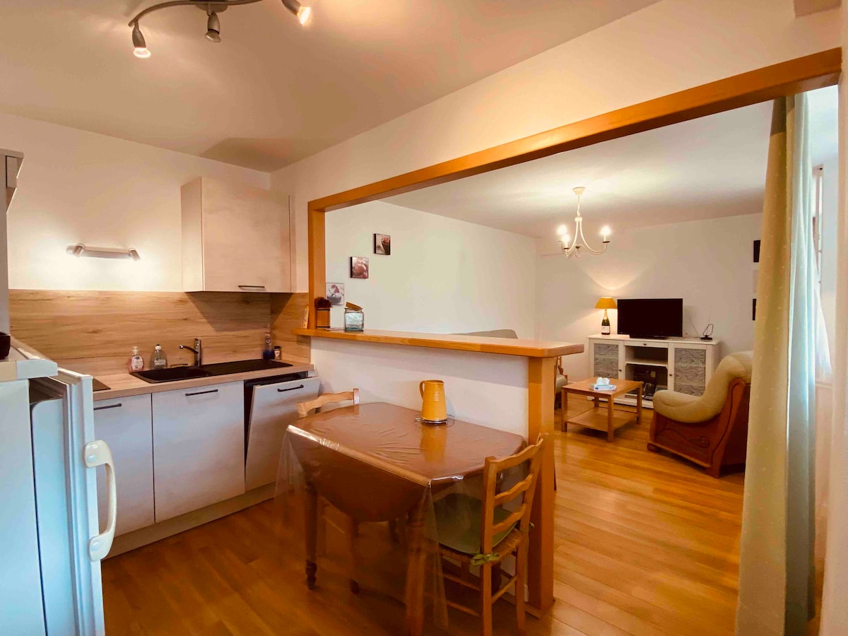A real cozy nest, everything has been thought out for your comfort. A cozy place, furnished by Marie with natural and raw materials. The separate bathroom allows for rest and relaxation. The terrace allows you to enjoy a good time with your favorite reading, have breakfast or spend a pleasant evening by the warmth of the fire pit.