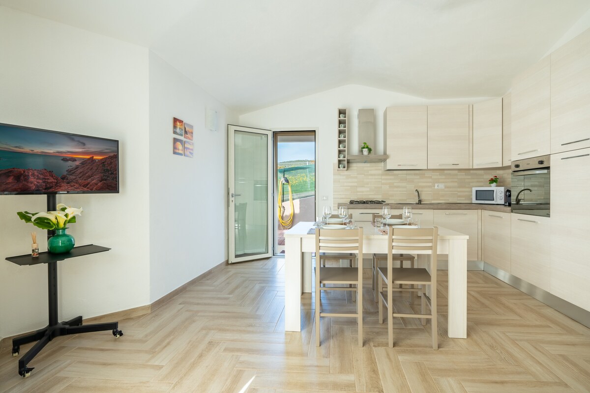 In prima fila sul mare, la villetta Granito gode di un’ottima posizione a pochi metri dal mare, ma anche dalla Piazzetta dove si trovano market, bar, ristoranti e negozietti. Il soggiorno suddiviso in due ambienti, una zona con il tavolo da pranzo ed una con il divano e la tv e cucina è completamente accessoriata e funzionale. La zona letto è composta da due camere matrimoniali ognuna con il proprio bagno. . All’esterno la villetta è immersa nel verde e gode di una magnifica vista mare.