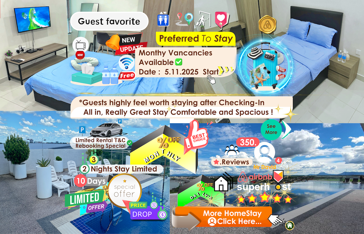 My homestay is located at very strategic location (Boulevard shopping mall), which is nearby airport, bus terminal, shopping malls & major tourist attractions. Therefore, my homestay is suitable for business travelers, couples, and travel with friends & families Guests are able to access swimming pool, gym, sauna, steam bath, shopping & eating places. Please enjoy your trip & stay in my homestay, and at the same time, explore Kuching’s must-go attractions; Sarawak cultural village, etc.