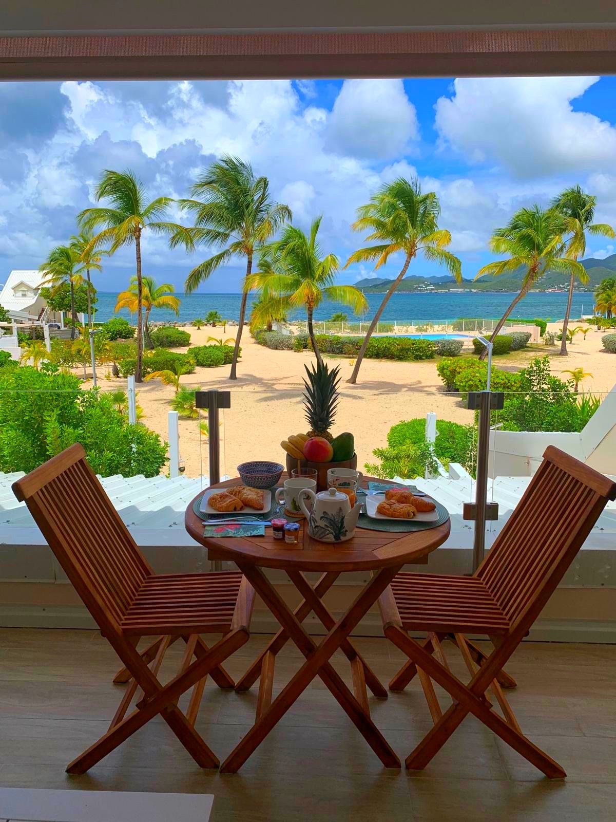 Apartment with a Beautiful Sea view Right on the beach of Nettlé bay with Pool Close to shops Restaurant, bakery, Pharmacie.. 15 minutes de l Aeroport international Juliana And Mullet Bay Golf Red Bay Beach & Plum Bay 10 Minutes Although life on our Friendly island is very good , it is to be noted that electricity and water disruptions may happen please be assured that all concerned do their utmost to minimize any Inconvénience « Thank You 🥰