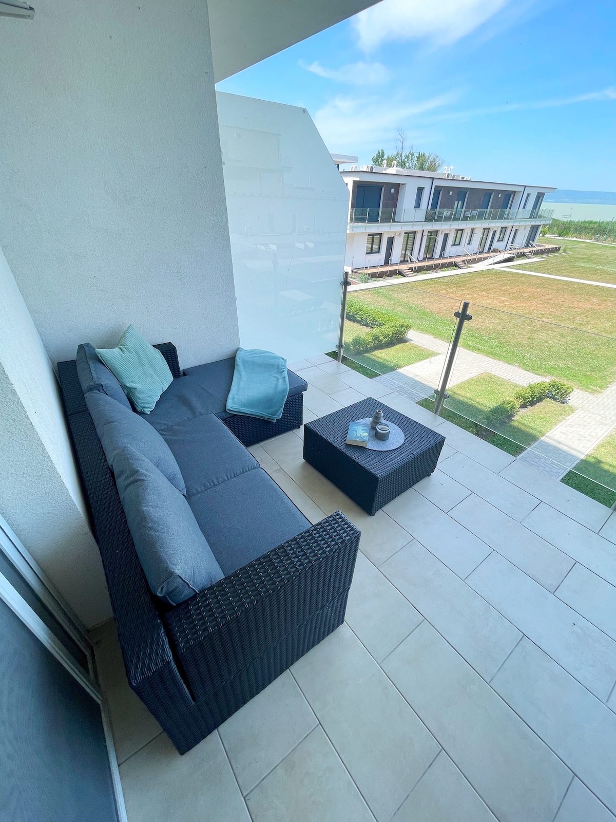 This is a stunning, newly-built and newly furnished, open plan apartment on the ground floor with floor-to-ceiling windows looking out to its private garden and patio. The apartment is built on a slope, into the hill and it is truly relaxing. It is located in the picturesque Fonyódliget, surrounded by nature and hiking paths. The beach is less than 5 – 10 minutes walk away and Fonyód town centre is about a 15-20 minutes relaxing stroll by the lake.