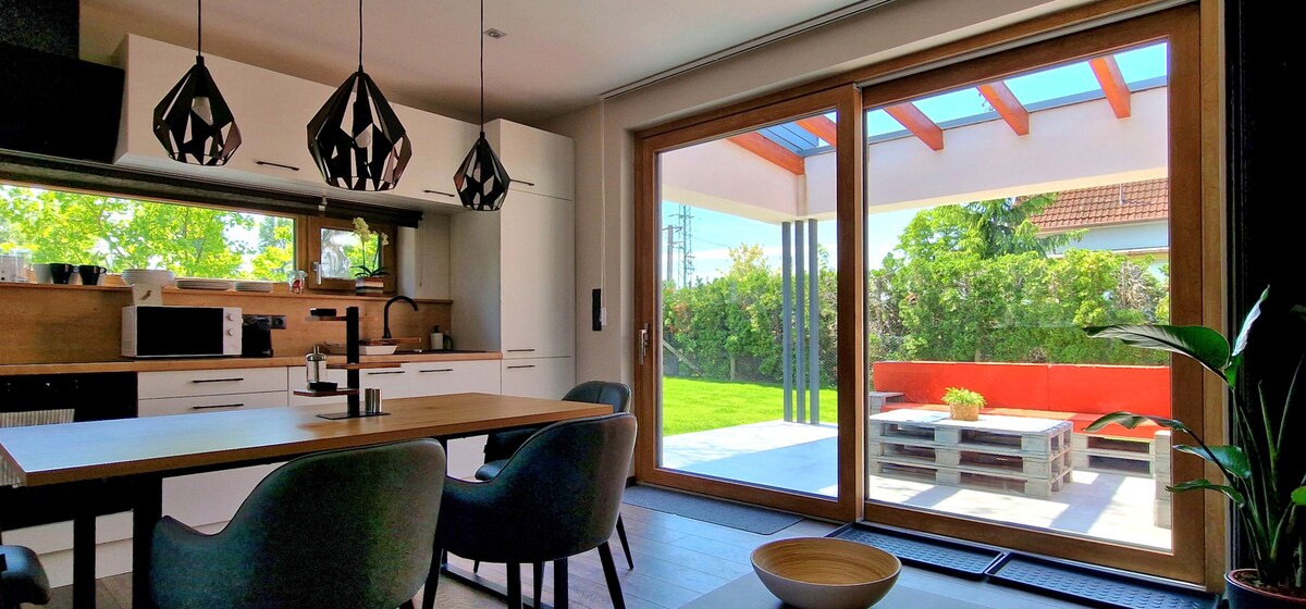 The 180m2 exclusive home is the perfect place for friendly families to relax together. The house has 3 double bedrooms, as well as a separate children's room with a bunk bed and a pull-out sofa bed. Our 45m2 private terrace is an ideal place for barbecuing, ping-pong matches. Our own 110m2 enclosed sports field is for active recreation. The living room-kitchen area is also more than 60m2, so even in bad weather, you can spend time in a great atmosphere, even by the fire in the fireplace.
