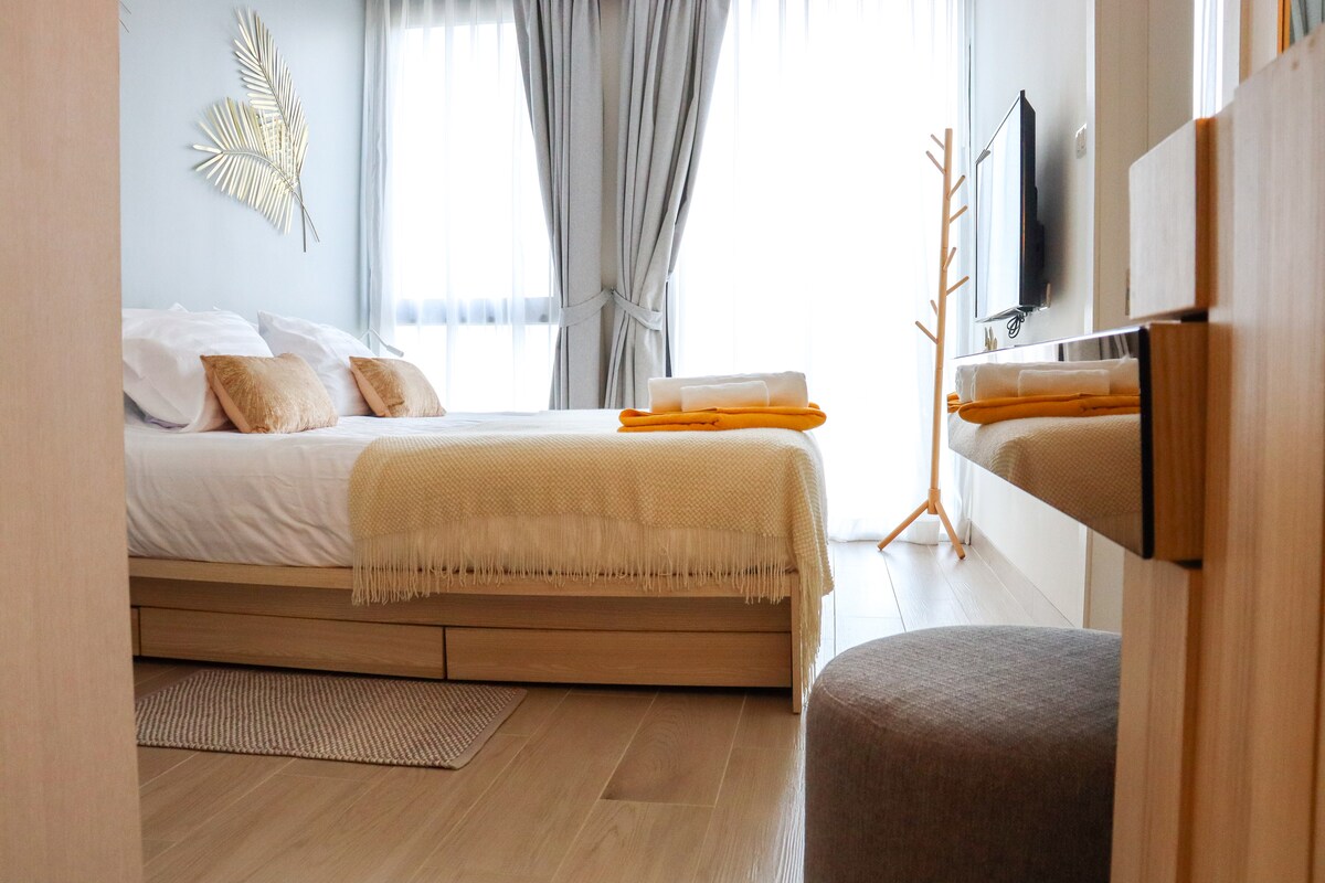 Great location at the heart of Boat Avenue in BangTao, this apartment comes with all the perks for a perfect short/long term stay in Phuket for 1 person/couple. Located at the top floor in ZCape X2 you will wake up with a beautiful mountain view close to all key locations to start your day the right way. The condominium has a swimming pool & gym completely free of charge along with private high speed wifi, smart tv, washing machine, etc. Right across the famous Bang Tao night market.