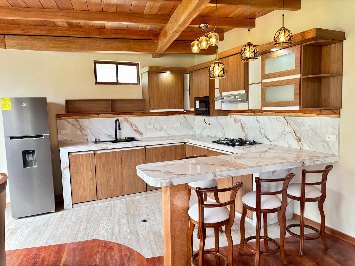 This independent Suite is a unique space: it combines 5-star comfort with queen bed, designer furniture and modern appliances with a huge green patio where you can relax in the middle of nature. In the garden you can harvest your own organic fruits and vegetables (including coffee). It is ideal for couples, maybe with 1 child (for baby there is a crib). You can walk to the waterfalls in 5 minutes and to the center in 10 minutes by car. You can park it next to the Suite with an electric car plug