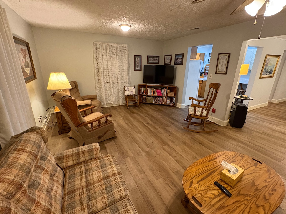 Cozy up with the whole family in this lovely two-bedroom, one-bathroom home. This stay includes a king and queen bed, with a TV in each bedroom. Grab a bite to eat at one of the many local restaurants or whip up your own meal in the fully-stocked kitchen. A dishwasher, microwave, air fryer, Keurig, pet bowls, and toddler dishes/utensils are included. Be sure to take advantage of the fenced-in backyard, fire pit, and gas grill. You will find a treadmill, elliptical, and weights in the garage.