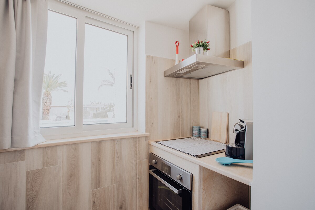 Lamia della Pietra is a refined studio apartment immersed in the tranquility of Mediterranean nature, ideal for those seeking peace and relaxation. The cozy interiors blend harmoniously with well-kept outdoor spaces, including a private swimming pool with RGB lights and a panoramic terrace overlooking olive groves, vineyards and almond groves. An authentic stay amidst silence, comfort and beauty.