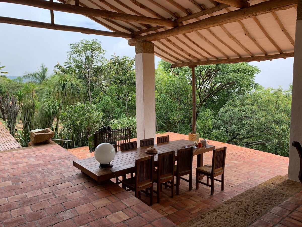 This is truly a beautiful property overlooking the Uchata mountain range. Ten minutes outside Barichara, on the way to Guane, this tobacco farm has been carefully renovated. The house was ranked as one of the best in 2019 by Axxis architecture magazine and won mention in the 2022 Architecture Biennial. The outdoor kitchen and pool area make cooking a social event. There is an authentic clay oven and barbecue for cooking over wood.