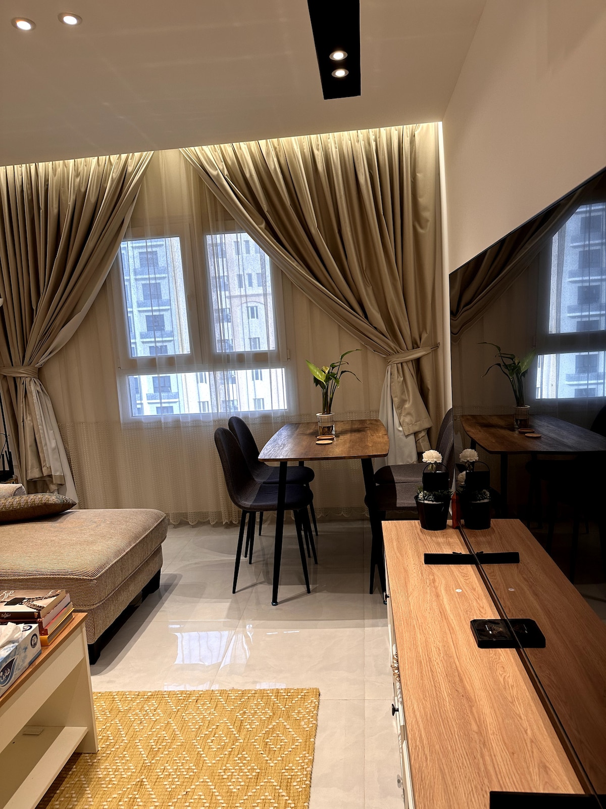 Luxury 2BR apartment for daily rent –. 📍Al-Maabela, Al-Nuzha Street near Muscat Mall. VIP setup: queen bed + 2 beds, fast WiFi, 75” TV (Shahid), full kitchen. Perfect for families & travelers. شقة فاخرة غرفتين للإيجار اليومي . 📍المعبيلة – شارع النزهة، قرب مسقط مول. تجهيزات VIP: سرير كبير + سريرين، واي فاي سريع، شاشة 75 مع شاهد، ومطبخ مجهز بالكامل. مناسبة للعائلات والزوّار.