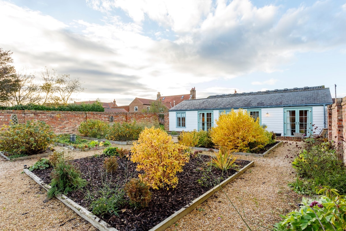A well-appointed, light-filled and modern 1-bedroom cottage with open plan living & kitchen area. Set within a private walled garden, this secluded, stylish cottage set apart from the main farm house offers a peaceful retreat in a beautiful Yorkshire village. With many walks from the front door, a village pub The Gold Cup Inn, just 200 yards away & easy access to historic York, the Garden House is a perfect spot from which to explore this lovely part of Yorkshire.