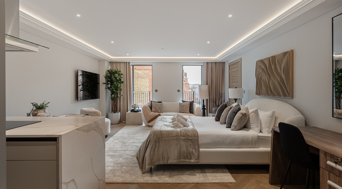 Newly renovated studio on Upper Richmond Road in Barnes — one of Southwest London's most charming and peaceful neighbourhoods. A large queen bed, underfloor heating, smart TV, and a fully stocked kitchenette make this a genuine home away from home. Separate shower room and toilet, washing machine, tumble dryer, and blackout blinds included. Barnes Station is a 5-minute walk — Waterloo in under 25 minutes.