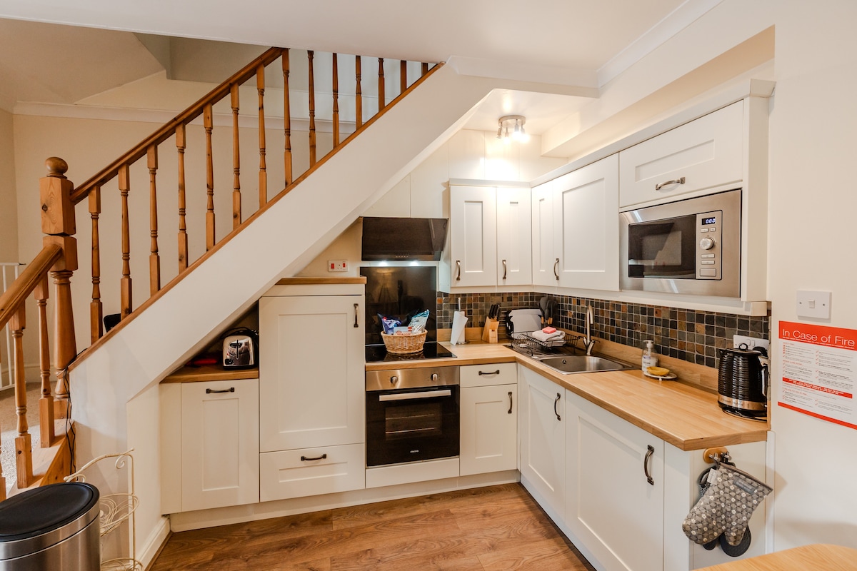 Stargazers apartment, one of two houses down a private drive. A peaceful, picturesque location. No noise or light pollution and the darkest skies in Europe. Enjoy the whole top floor with open plan lounge/kitchen and historical bookcases. Bedroom with roll top bath, king size bed, ensuite bathroom. It's a fabulous space! Separate entrance via a beautiful glass atrium with amazing views. Private stargazing terrace & Telescope 2 guests maximum Shared garden. Pets considered please ask first.