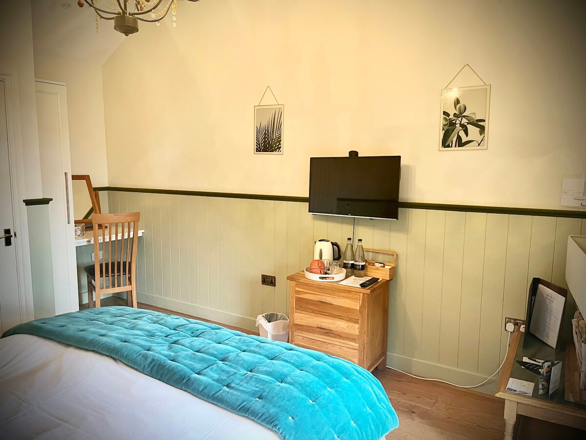 Non-smoking Our King Room has a comfortable Kingsize bed, en-suite with shower, smart TV, Tea/Coffee making facilities, mini fridge, desk area with a chair. The en-suites have shower facilities, towels and complementary toiletries. The King Room has a hot drinks hamper which is complementary for our guests. Ironing facilities are in each room. No pets policy at the property No children allowed