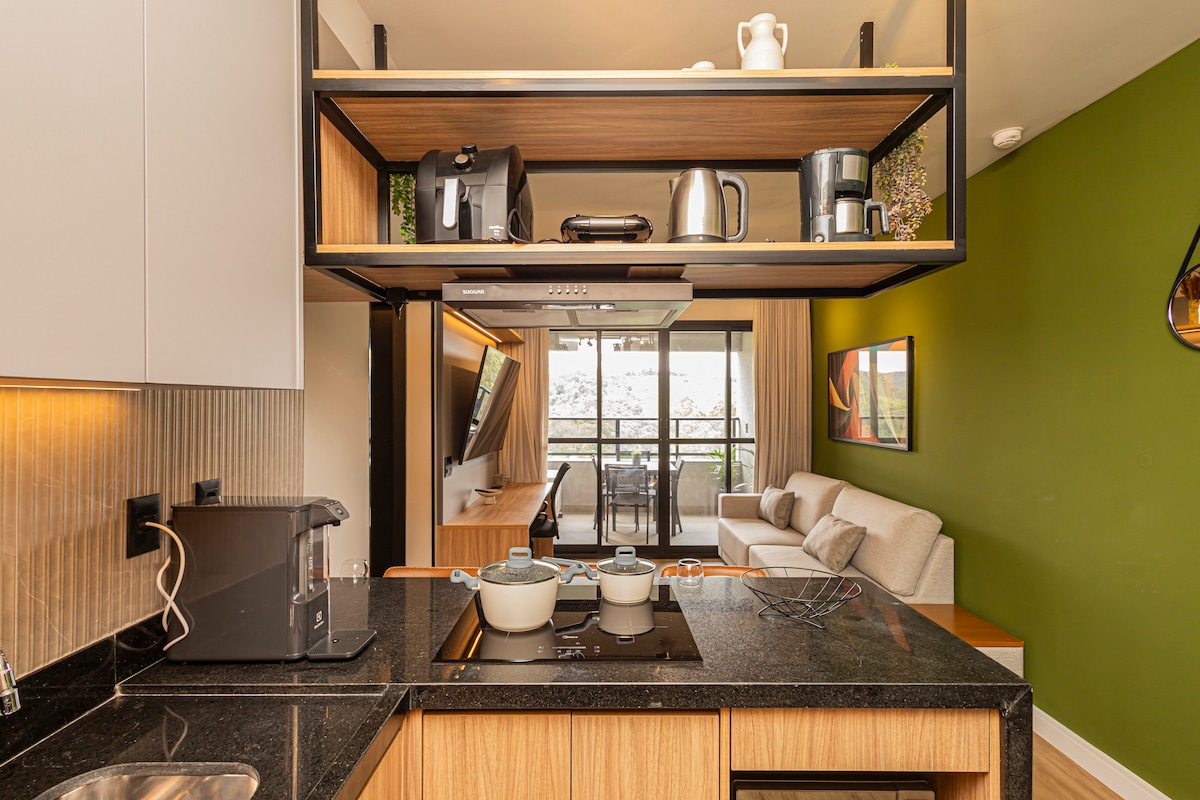 Welcome to your modern retreat in the heart of Alphaville. A space designed to offer maximum comfort to you and your family. The apartment features a comfortable double bed, TV, and internet. The kitchen is fully equipped for preparing your meals. Amenities: * Air conditioning. * Wi-Fi. * Fully equipped kitchen. * Modern bathroom. * Note: All outlets are 220V. Full access to common areas: * Gym. * Laundry. * Parking. * 24-hour concierge.