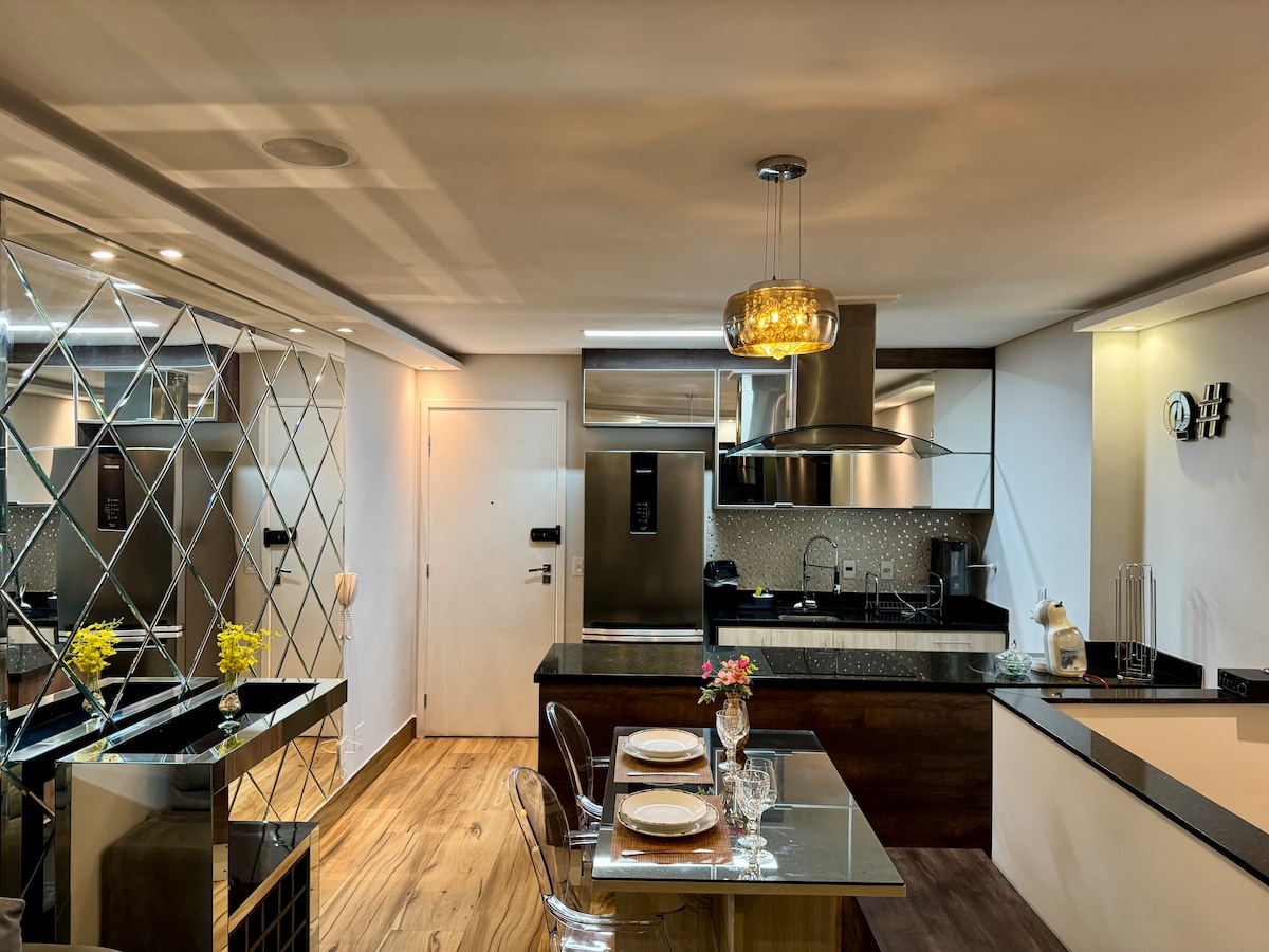 Decorado e pensado para que você se sinta em casa. Vista para o verde e ótima localização (em frente ao Mercado Pão de Açúcar, Petshop, próximo an Alameda Rio Negro, Shopping Iguatemi, Restaurantes e outros serviços). Com máquinas Nespresso e B.Blend. Condomínio clube completo com sala de jogos, piscina aquecida, academia, cinema e outros serviços. 1 quarto com cama queen e banheiro (suíte) 1 quarto com cama e bicama de solteiro (Berço portátil da Maxi Cosi, sob demanda) 2 banheiros 2 vagas