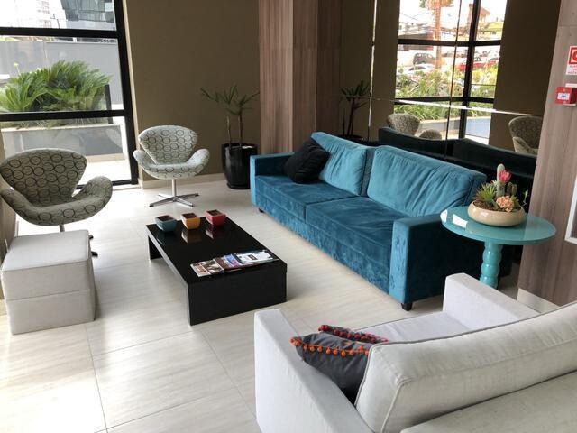 Flat in the heart of Alphaville with all the comforts to work, study, rest, go to appointments, do interviews, exams, courses. Double bed and sofa bed. Close to shopping facilities and services in general. Everything is right next door and... within walking distance! Heated pool and gym in operation. Blackout curtains for your rest. Kitchen with everything! A parking space in the garage is included in the accommodation. Ipe wood flooring.