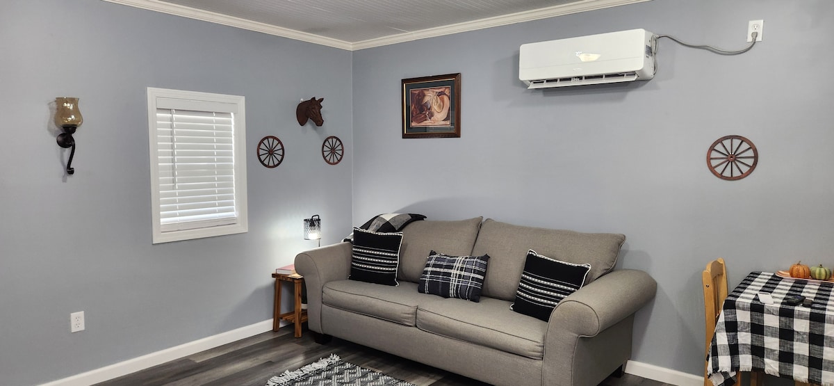 Need a break? A place to meet up with family/friends? A romantic getaway? This comfy cabin can accommodate! Kick back & relax in the rustic-chic space. Full kitchen, 2 bedrooms, 2 bath, living room, dining area. Enjoy the view of the pond from your porch, put a line in or walk an easy trail. Traveling with a your furry friends, no problem-all are welcome. Close to Longleaf Trace, Rt 84, state parks. Ride the trace, we will pick you and your bikes up at the trail head!