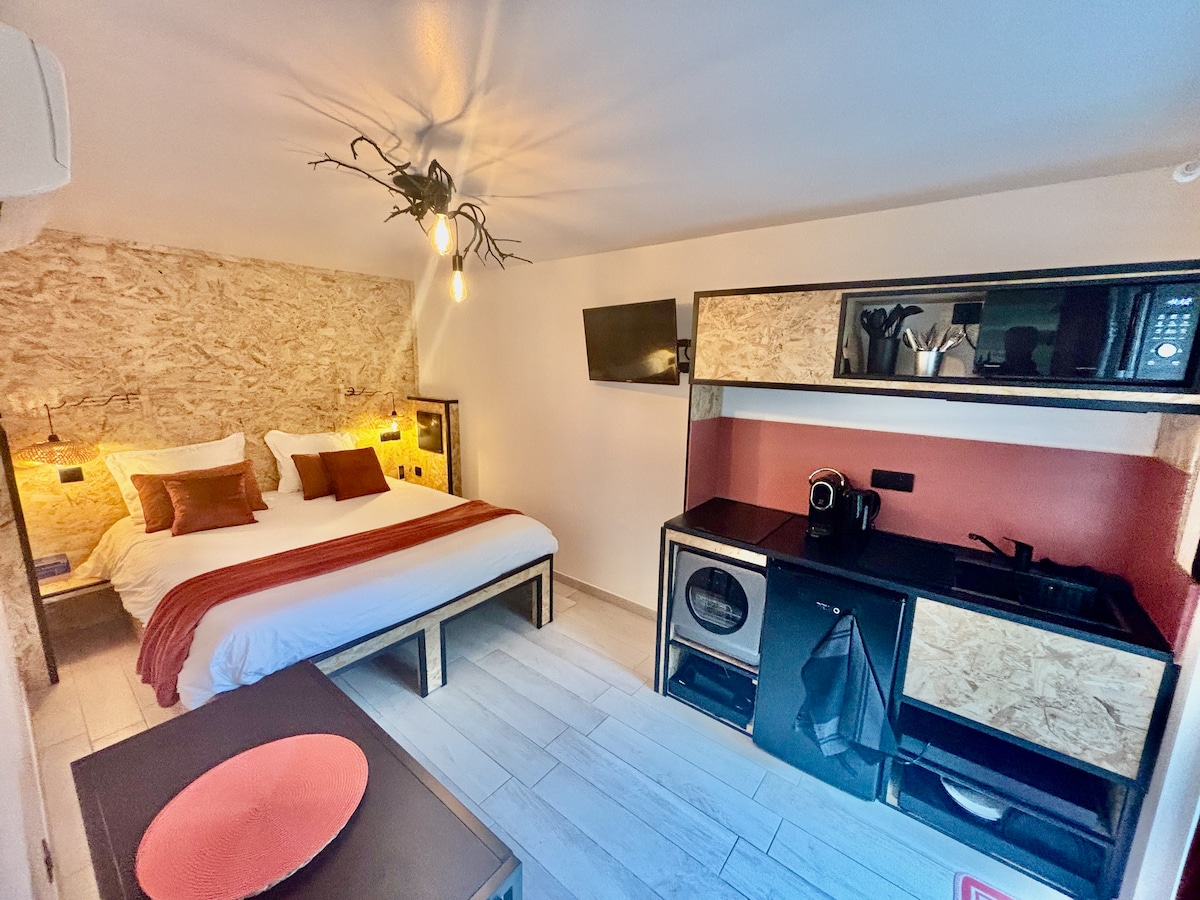 Chambre de charme entre mer et montagne à 30 min d’Ajaccio Literie haut de gamme (160x200) . Clim, SDB privée (baignoire), Wi-Fi et Smart TV. Profitez de la terrasse, la piscine, du jacuzzi et d'un parking privé & garage moto. ☕Petit-déjeuner sucré inclus (8h30-9h30).🍽️Dîner convivial à 20h : menu unique à 35€ (rés. 24h à l’avance), planches /salades. 🔑 Accueil personnalisé 16h30-18h, départ 10h. Une parenthèse authentique et gourmande pour savourer la douceur de vivre corse.
