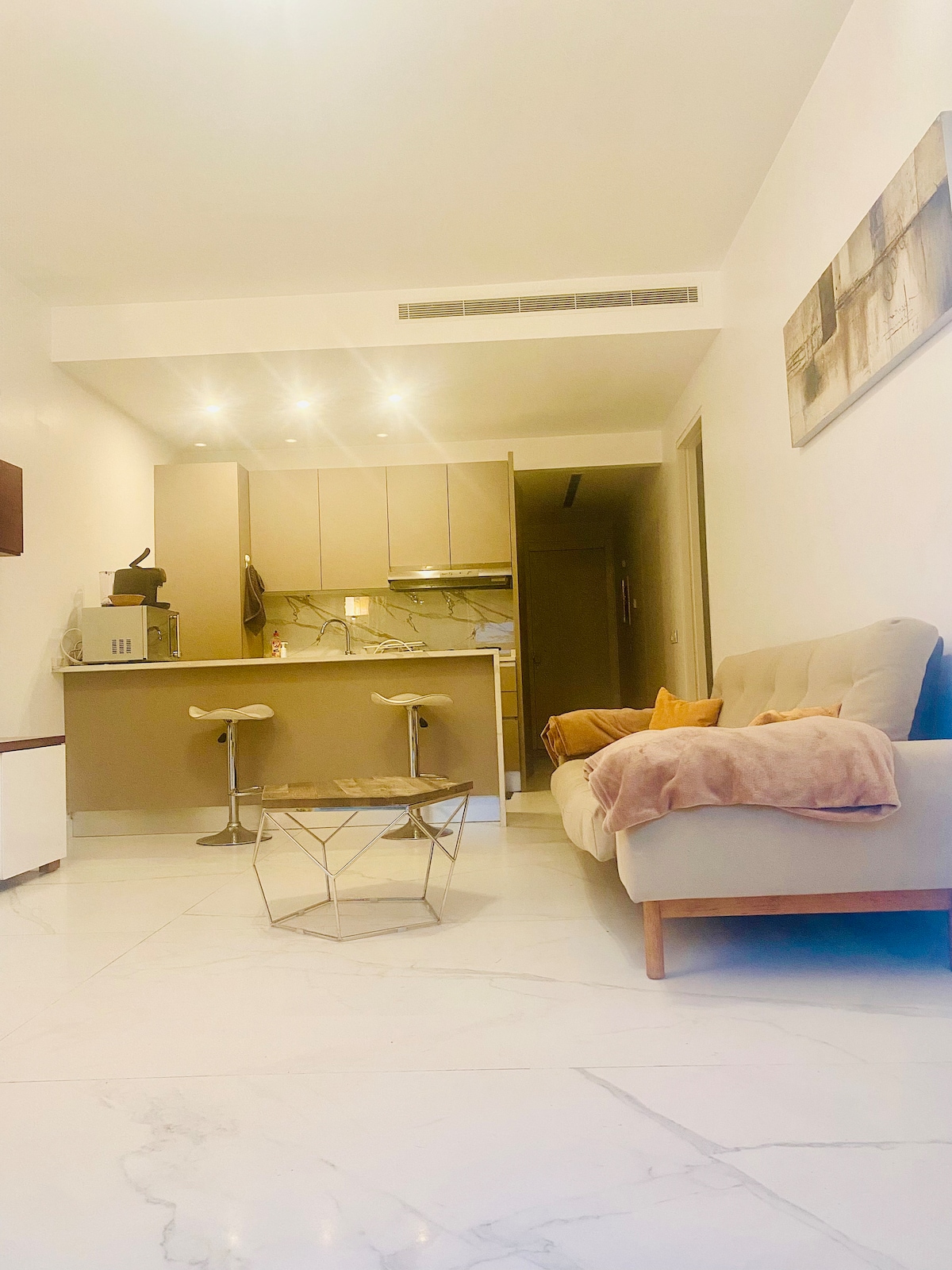Indulge in the charm of our condo, in Tripoli, tucked away on a serene street within an upscale building facing a garden. With 24/7 electricity experience the perfect blend of coziness and spaciousness, complemented by the convenience of private on-site parking. Unwind on the spacious balcony, ideal for savoring your morning coffee. This inviting space is perfect for extended stays with friends or family. Discover urban luxury in a tranquil setting. Welcome to your home away from home.