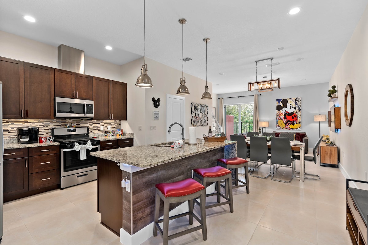 Adventure Awaits in the "Sweet Retreat", a fabulous 5 Bedroom townhouse in the World Class resort of Windsor at Westside. This newly refurnished home sits right next to the resort clubhouse and features a Pirates of the Caribbean loft area with an exciting Pirate Scavenger Hunt for kids of all ages. Kids will love the Pirate loft, Mickey bedroom and Moana themed bedroom. Parking front and back, FREE WIFI, FREE Pool Heat and FREE BBQ make this home your perfect Disney getaway.