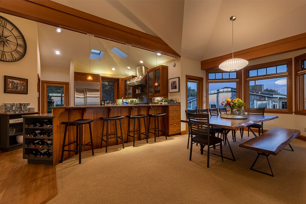 Welcome to The Waves House! Enjoy our professionally serviced hot tub with no additional fees! Relax and recharge in our Single Level, Ocean View, Dog-Friendly, 2 bedroom, 2 full bath custom family style home with private oceanview hot tub, skylights in every room, and cathedral ceilings. Enjoy Complimentary Wine upon arrival ~ King Pillowtop Beds ~ WiFi ~ Fireplace - (Presto logs only - guest must supply) ~ 50" Smart TV ~ Walk To Beach ~