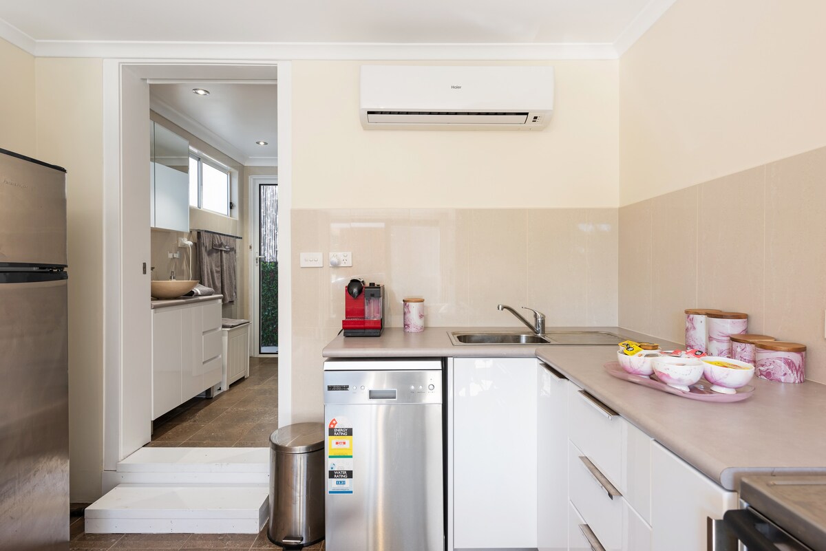 ★ Vaccinated Hosts ★ Stay by the Bay is a private self-contained studio/guest house just footsteps from the sandy shores of Botany Bay, the birthplace of Australia! Newly built with a modern kitchenette & bathroom, it is the ideal retreat for couples or the solo traveller wishing to stay close to the beach, airport, nearby hospitals or simply getaway. Including a garden outlook, light filled interiors, Egyptian cotton sheets & local pastries on offer - we invite you to book your next stay!