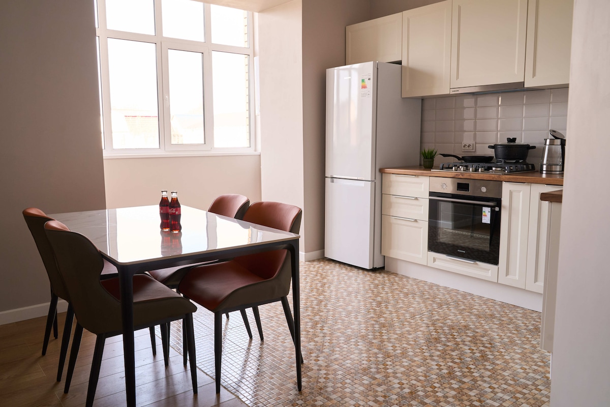 Stylish two-bedroom apartment with character in the heart of the city, near the historical part of the city, within 5-10 minutes there are numerous establishments, museums, restaurants (Barrel, Eldivino, Befor, Coffee Original), offices *** -Spacious apartment with kitchen-living room and separate bedroom -Style, coziness and cleanliness -Tropical shower -Orthopedic mattress -Flat curtains blackout - There is a bed and a large folding sofa - Water filter - Keyless access -New renovation