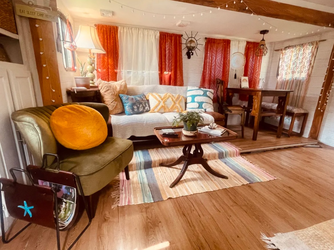 Beautiful Vintage Airstream ready for your vacation pleasure. Located in beautiful Beaufort, this vacation rental is less than 3 miles from historic downtown Beaufort, Parris Island, Beaufort MCAS, and is close to beautiful beaches and Hunting Island State Park! This well maintained Airstream is 34’ in length, sleeps up to 3.5 humans, has an eat in kitchen, twin beds in the master, sleeper sofa in the living room area, and the dinette also converts to a twin. Grill and outdoor fireplace on site