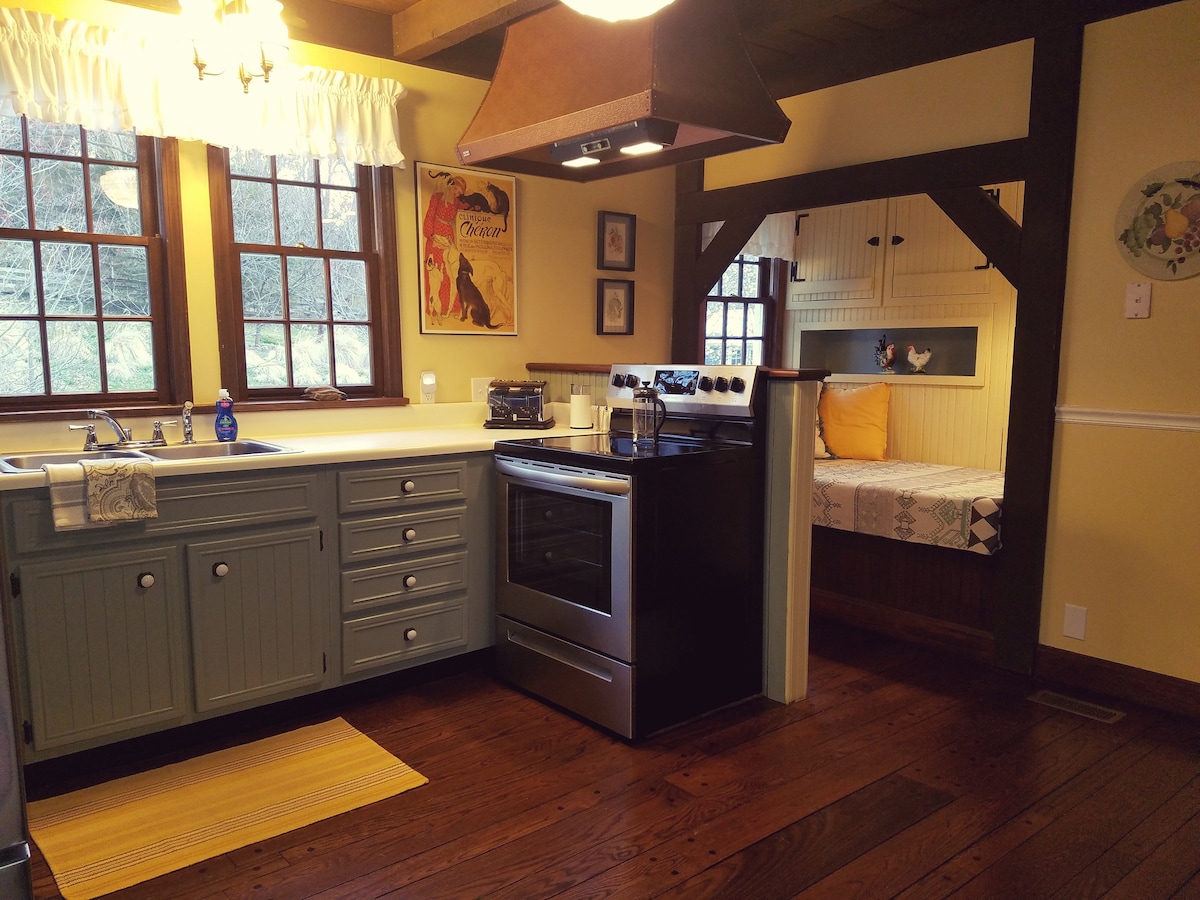 Discover Serenity in this 675 sq ft Studio cottage on a private wooded lot. Cozy space with 1 queen bed & optional sofa queen bed for up to 4 guests. Relax on the patio, enjoy a bubble bath in the vintage clawfoot tub, or take in the panoramic woods view on the couch. Amenities include WIFI, washer/dryer, fully stocked kitchen, pack&play. Just 60 mins from downtown STL, 15 mins from Washington, 20 minutes from Six Flags. Your tranquil escape awaits! No pets allowed.