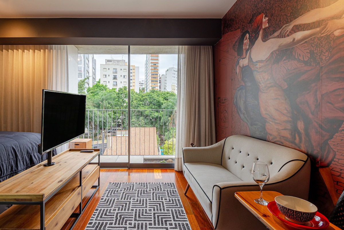 Lovely and spacious studio in the heart of São Paulo's Vila Madalena neighborhood - reside steps away from shops and restaurants, public transport, universities and the city's financial district. This brand new apartment has custom furnishings, and is set in a doorman building. Perfect for those looking for a long stay, those here on business, or even those who are just spending a few days to explore São Paulo's cultural offerings and want the convenience of a fully equipped apartment.
