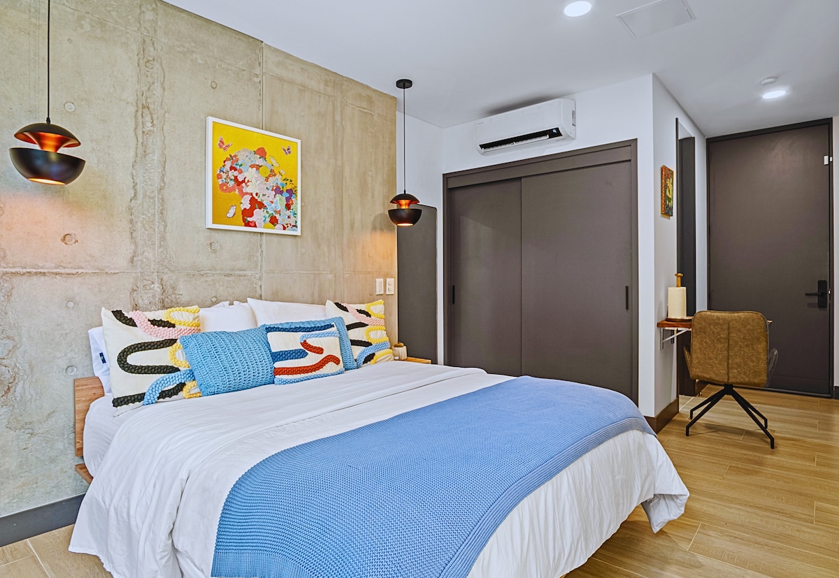 Modern, Bright, Quiet: A/C, Pool, Desk & Balcony