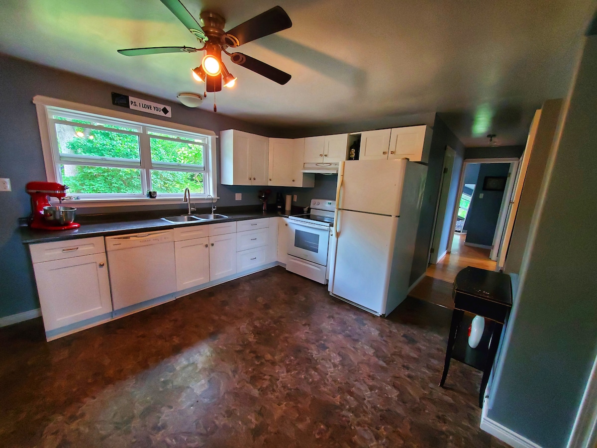Small private lakefront cottage. Secluded property next to the beautiful Ellenwood Provincial Park, full of hiking/walking trails. Rustic, and undergoing minor renovations, but a very cozy, clean place to stay. The Lake is clean and great for swimming! Full kitchen with most everything, an outdoor fire pit for nice nights, and a piano for rainy days. Heat pump, BBQ, fibre op, & Roku TV + Netflix! Wood stove is functional for extra heat and ambiance, wood not included however.