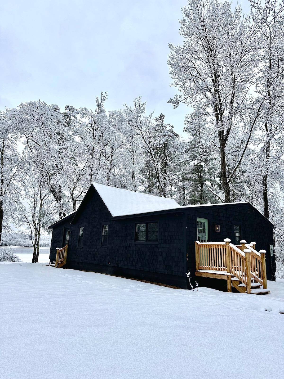 Cliff House is one of 5 luxurious tiny homes that make up Littlefield Retreat, a tranquil woodland village of 3 treehouses and 2 hobbit houses – each with its own private hot tub and dock. To see all five dwellings, click on the photo to the left of “Hosted by Bryce”, then click “Show more…”. This 15-acre forest retreat on Littlefield Pond offers our guests an experience that feels like a trip up to the woods of northern Maine, but is closer to home and to all the attractions of southern Maine.