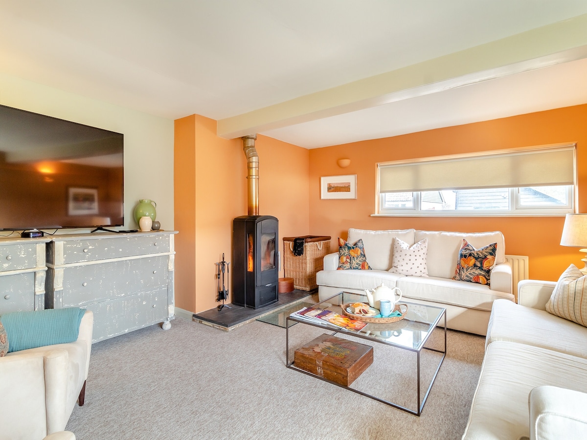 Water Meadow Cottage. A gorgeous 3-bedroom house, comfortably sleeping 6, ideal for families and anyone to unwind in all seasons. With a private south-facing garden full of flowers and birds, and secluded patio with delightful views across meadows. The stunning living room with original beams and bright windows is inviting in summer, and so cosy in winter with its wood-burning stove. Nestled in beautiful quiet countryside, a short drive from the coast, and Aldeburgh, Thorpeness, Orford.