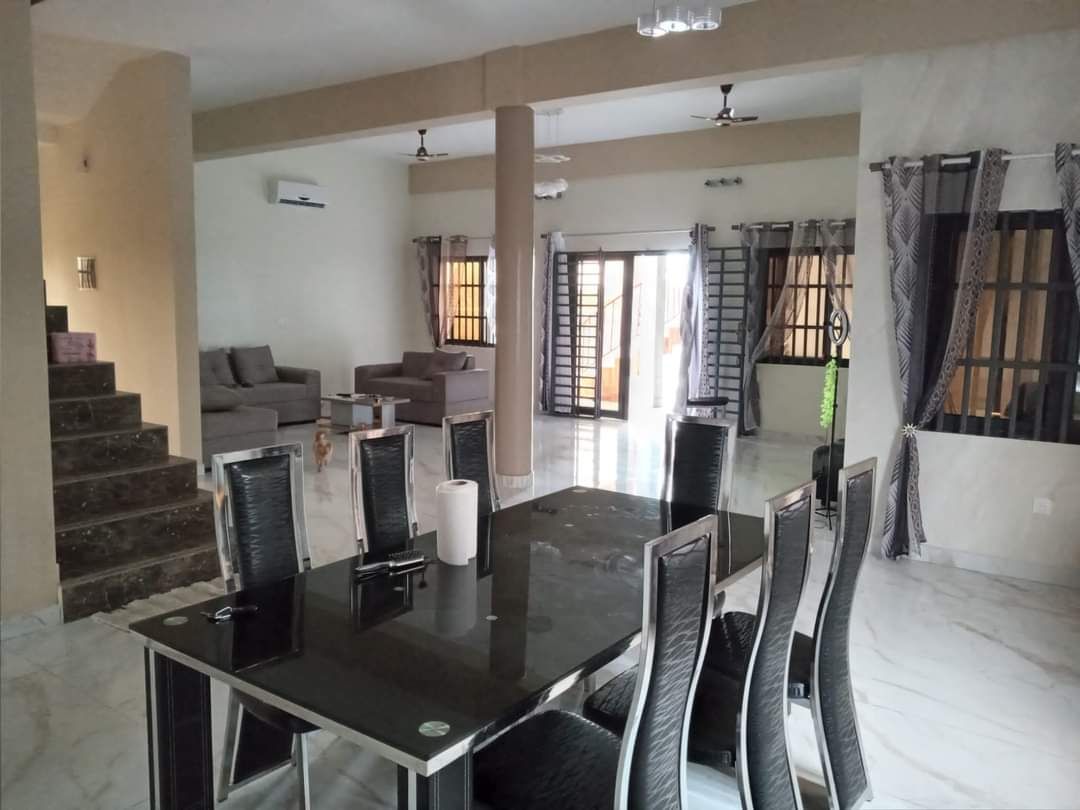 Rental in Fidjrossè, Benin, a fully air-conditioned furnished house overlooking the sea in Benin in Cotonou, minutes from the beach and close to all amenities - 4 bedrooms, bathrooms, - 1 dressing room, - 1 office, - 1 fully equipped kitchen - 1 huge living room - Free water - Free Canal subscription - Internal and external garage - 1 emergency staircase, Free housekeeping service Short stay and long stay accepted Choose comfort in a healthy, peaceful and safe environment