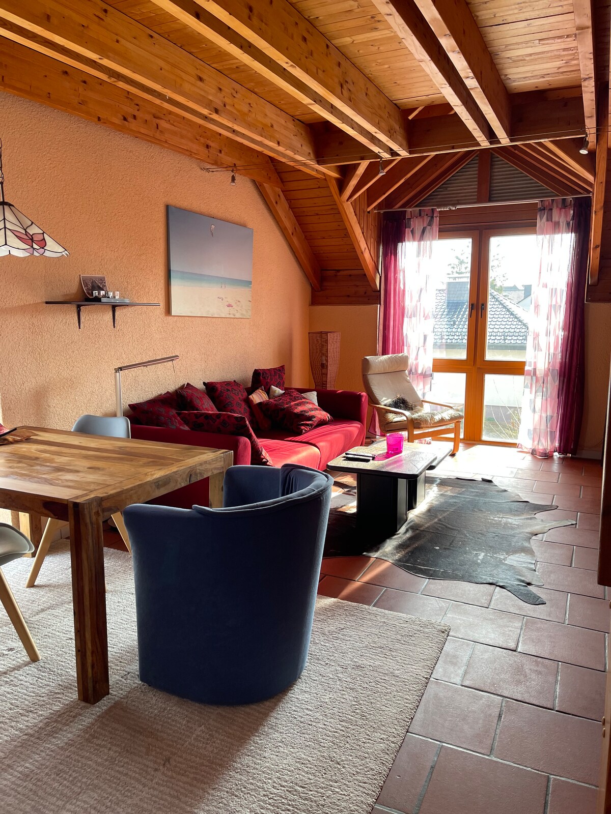 The charming, bright and cozy feel-good apartment with old floorboards is located close to the center in one of the most beautiful valleys of the Odenwald. The beautiful landscape can be explored on foot, by bike or motorcycle. You can start directly from the front door. Vacation feelings like in Tuscany, only here everything is still beautifully green with pastures and meadows. Attractions: Rodenstein Castle Ruins & Falling Cliff. Restaurants, bakeries, pharmacy and supermarket are within easy walking distance.
