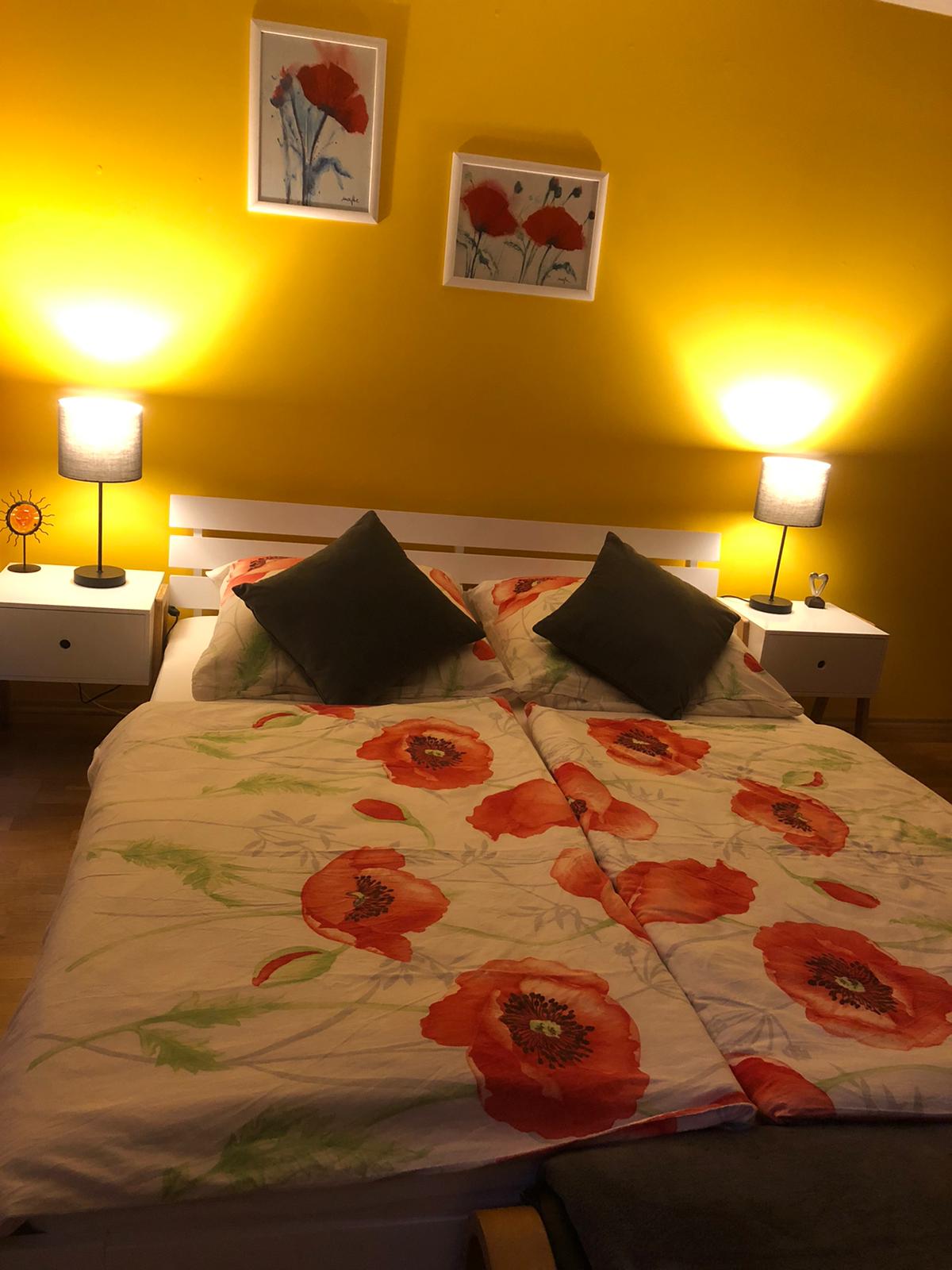 The apartment is located in a quiet location in Tempelhof-Schöneberg with parking spaces in front of the door. Public transport is just a 3 to 6 minutes' walk away. There is also a microwave, refrigerator, stove, plates and cutlery at your disposal. Shops are within a 5-minute walk away
