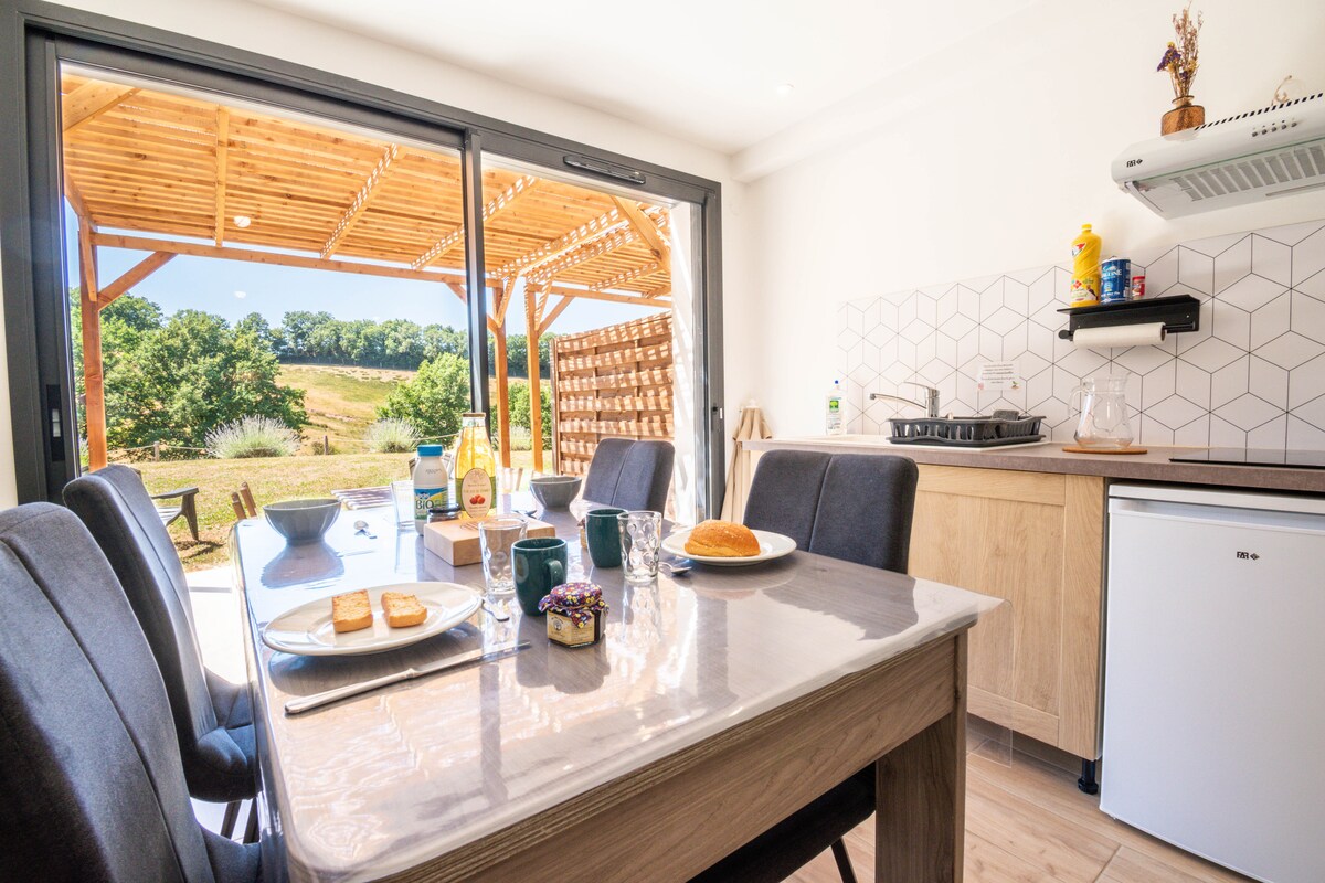 L'Alrance is one of our two accommodations located in the popular area known as the Château de Bozouls, above the canyon (geological curiosity 400 m in diameter and 100 m deep). The Bozouls Hole is an atypical natural horseshoe-shaped cirque. This meander was born from the L'Alrance and Dourdou rivers. Our accommodation is an architectural creation in wooden frame, metal cladding and dry stone gables. It is part of a site classified as a sensitive natural area.