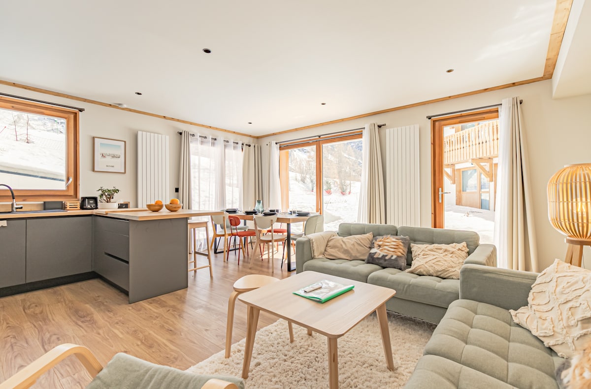 Listing description Cozy apartment for 4 in Bessans, close to shops and the Nordic area. Private sauna in the bathroom. Bright living room, equipped kitchen, storage. Sleeping arrangements 1 double bed + 2 single beds, or 2 double beds on request. Guest access Entire apartment with equipped kitchen, Sauna, Shoe dryer, Washing machine, Self check-in possible. Closed garage (underground parking nearby). Nearby Shops and cross-country skiing on foot.