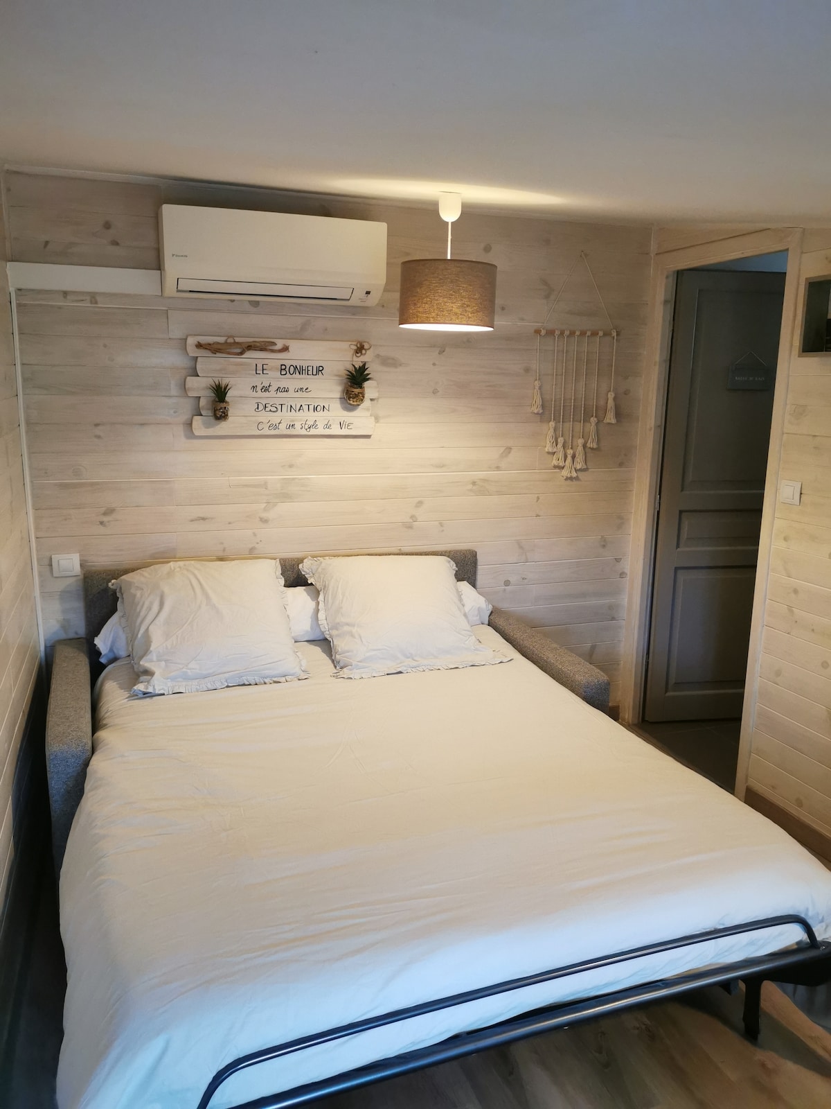 Minimaliste, au confort simple, propice au calme, à la détente et pour se déconnecter, notre petit chalet de 40 m2 dont 20 en mezzanine ( attention toiture en pente, escalier de meunier) est installé sur le même terrain que notre maison, à 3km du village de Biot, à mi-chemin entre Nice et Cannes. Non-fumeur à l'intérieur Ni WiFI ni télévision WC en extérieur ( ont remplacé les toilettes sèches) Clim réversible Relaxation et modelage sonore sur demande.