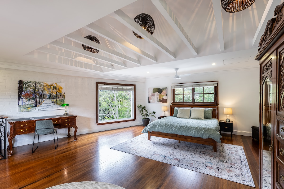 Rated one of the top 14 Airbnb's in Sydney by Urban Space. Light filled studio brimming with flowers & ferns, & a glorious stone bath for two. Opening onto extensive gardens with beach access from garden gate. All essentials: En-suite, kitchenette including microwave, toaster, coffee machine & jug. Adjacent undercover BBQ & gas ring. Organics products & fresh fruits included with breakfast. Please advise if gluten or lactose free. NB: Adult's only retreat, no children or pets.