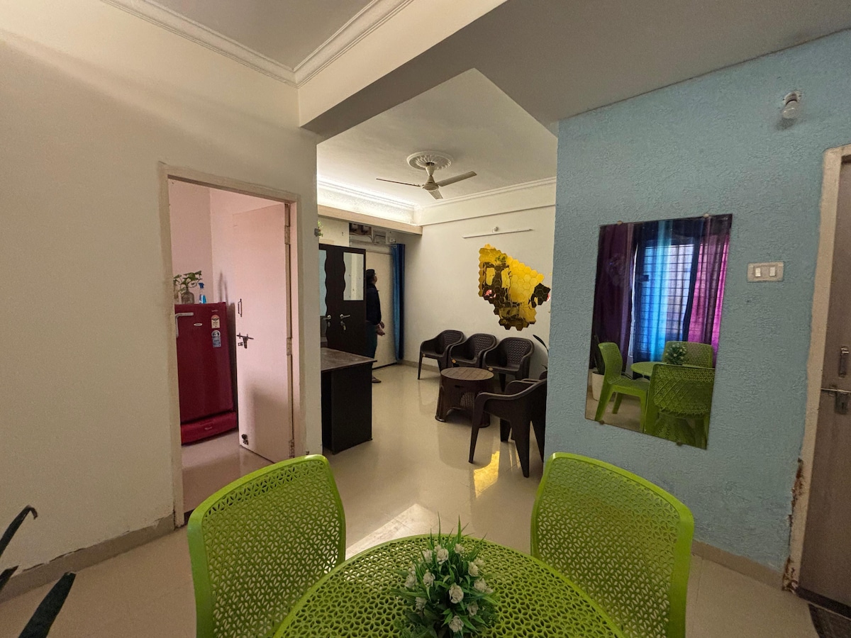 A cozy, independent 2 BHK flat located on the top (9th) floor, offering a homely environment for your stay. The flat features 2 spacious bedrooms, each equipped with an air conditioner to ensure your comfort. There are 2 clean and well-maintained bathrooms, thoroughly cleaned before your check-in. A fully functional kitchen is available, allowing you to cook your own meals . A washing machine is also provided for your convenience Enjoy access to 13 OTT platforms, including Hotstar and SonyLIV
