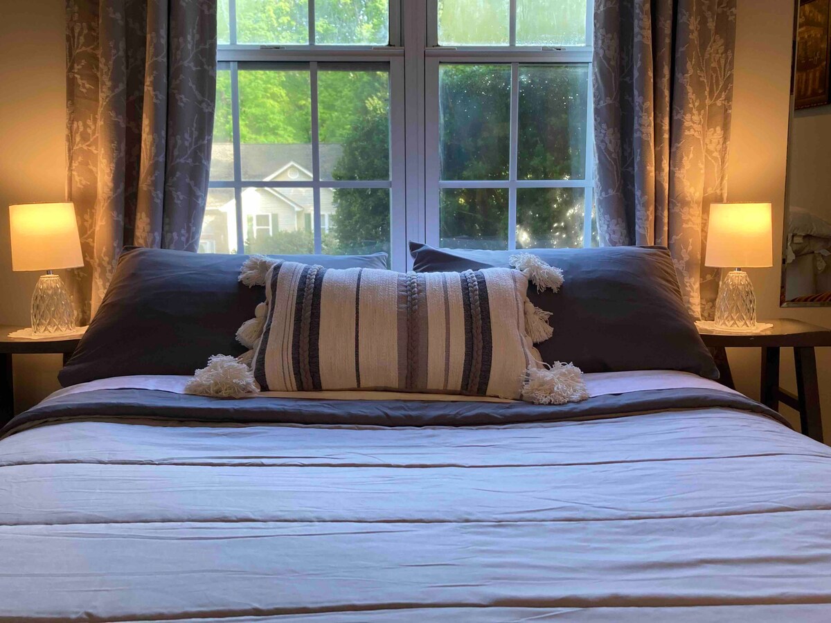 Proudly clean, Quiet, Safe! Walk to downtown Alpharetta/Avalon. Lots of restaurants, coffee, ice cream, shopping, dog parks HWY 400: 5 min(exit 10, 1.6 miles) Ameris Bank Amphitheater: 7 min, 2.2 miles Downtown Alpharetta: 2 min drive/11 min walk, 0.5 miles Avalon:<5 min drive/16 min walk, 1 mile Work Friendly: Desk, 27" monitor, white board & strong Wi-Fi Comfortable: King size, super comfortable beds in both bedrooms Renovated Nov ‘21. It's my passion to help ensure your great experience.