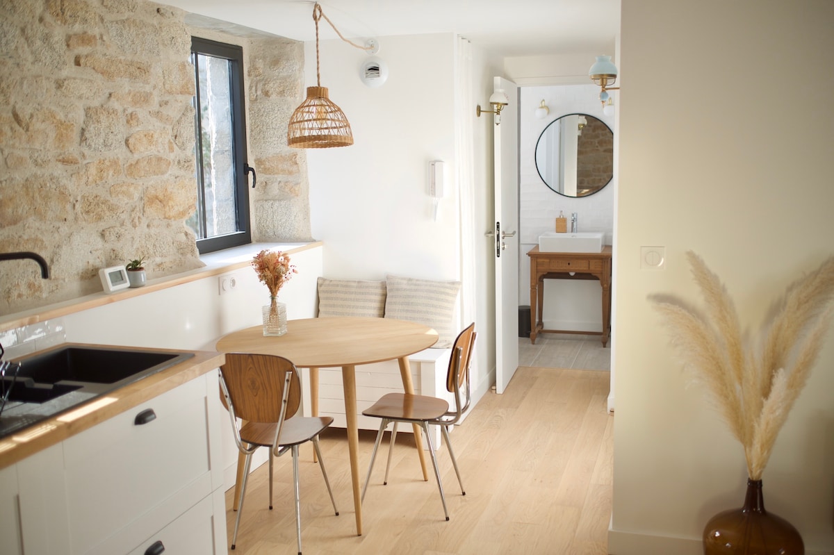 In a farmhouse completely refurbished in 2013, come and discover this small gîte full of character. The quiet of the countryside without being isolated and 10 minutes from the beaches of Audierne Bay. You will appreciate its geographical location ideally located for your visits and walks, in the heart of the Bigouden country, Quimper 13 minutes away, 20 minutes from Douarnenez, Pont l'Abbé and La Torche. Hiking trails nearby (Pedestrians, Mountain Biking, Equestrian), several surf spots in Audierne Bay.