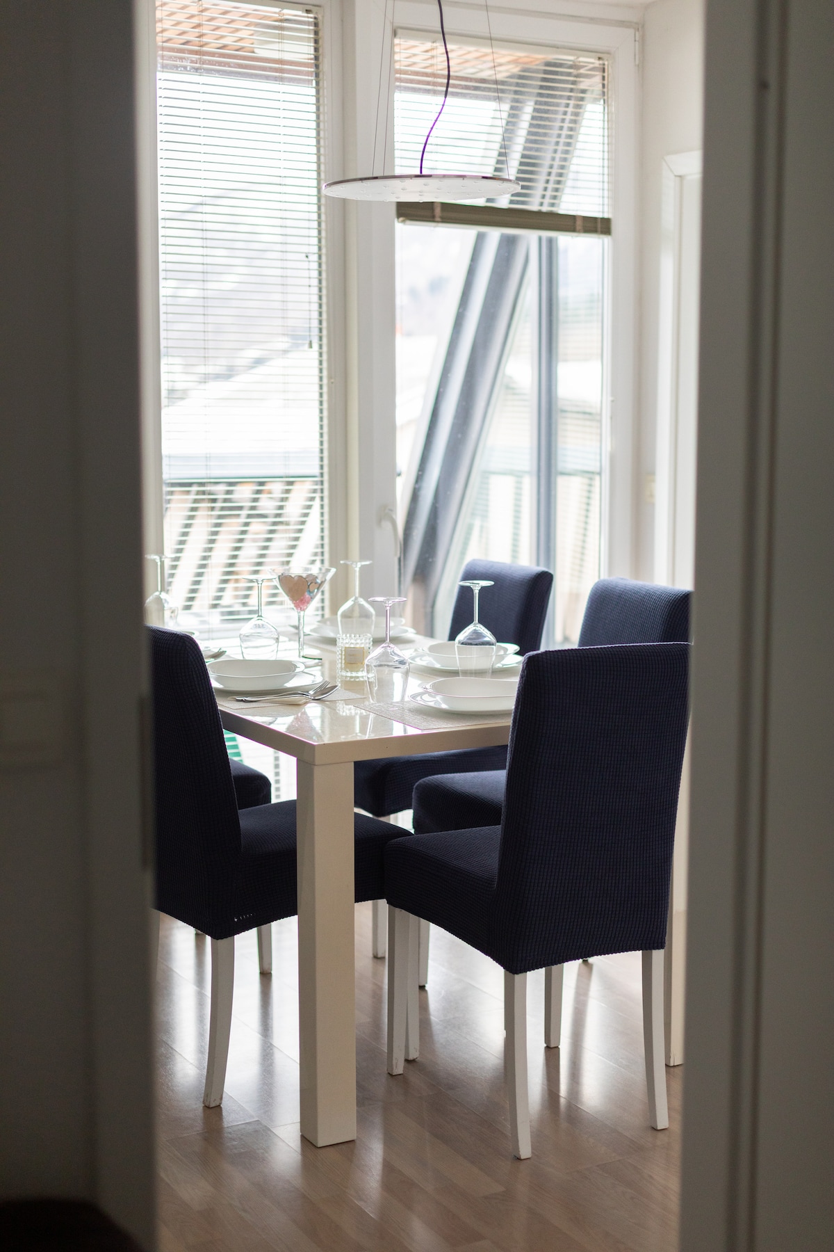 Bright apartment- loft with a great view of the mountains, just a few minutes from lake Bohinj. Black and white with something red - like a cake with a cherry on top :) You'll feel at home and at the same time you’ll be on holidays. Location offers many hiking and bicycle paths and it is close to the ski resorts of Vogel and Soriska planina and a Water park with wellness and only a few kilometres from lake Bohinj, where you can swim, surf, kayak, sup,..., and enjoy the nature.