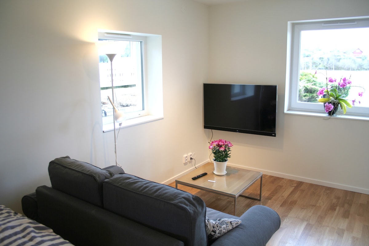 Welcome to our newly-built apartment in Björlanda Kile - just 350 meters from the sea and 20 minutes from central Gothenburg! Here you live close to both forest, salt rock pools and a good selection of outdoor activities (beach volleyball, bike park & kayak rental). Perfect if you need a "get away" from the city! A beautiful path leads you through cow pastures and over cliffs down to the sea – the top for a morning swim (no designated swimming area). In the area, there are also two designated swimming areas: Stora Udd and Östra Piren.
